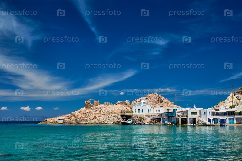 Живописные виды на греческую деревню в Греции - пляж и рыбацкая деревня Фирапотамос на острове Милос, Греция