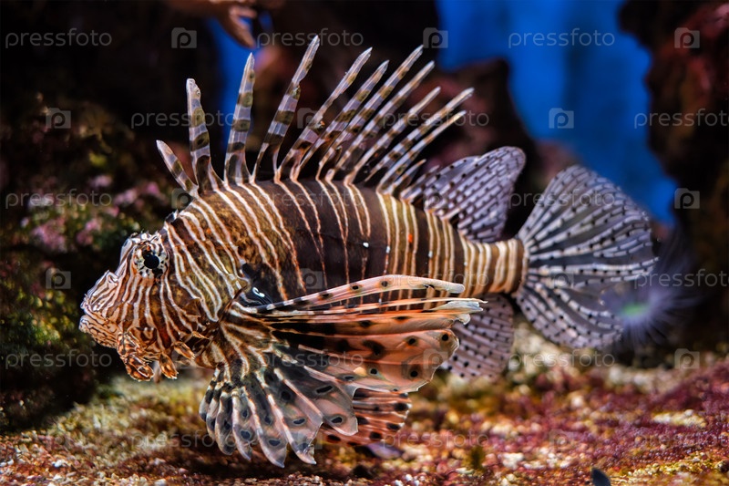 Красная львица (Pterois volitans) - это ядовитая подводная рыба кораллового рифа