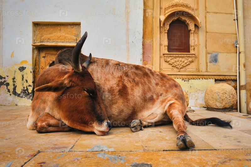 Индийская корова отдыхает на улице