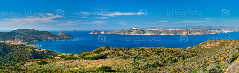 Живописная панорама греческих пейзажей - Эгейское море возле острова Милос в летний день в Греции