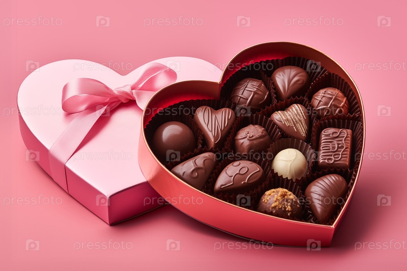 Ассортимент шоколада на День святого Валентина в коробке в форме сердца