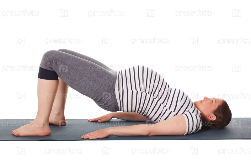 Йога упражнения для беременных женщин - йога асана Purvottanasana Вверх планка Поза подчеркнута на белом фоне