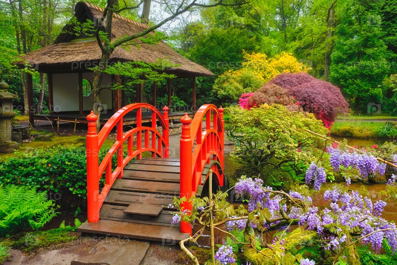 Небольшой мост в японском саду, парк Клингендейл, Гаага, Нидерланды
