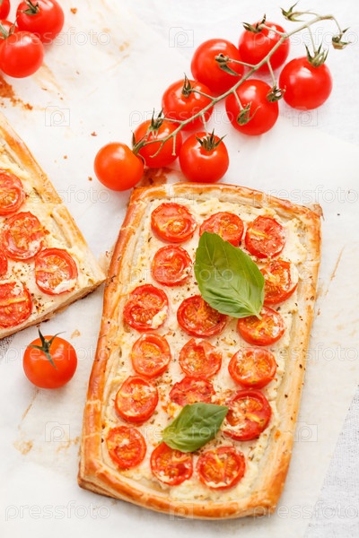 Пирог с заварным кремом, помидором и рикоттой