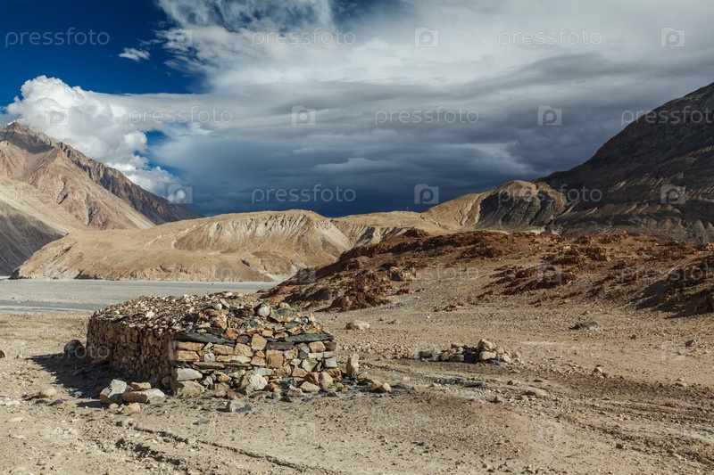 Вид на долину Нубра в Гималаях.Ладакх, Индия