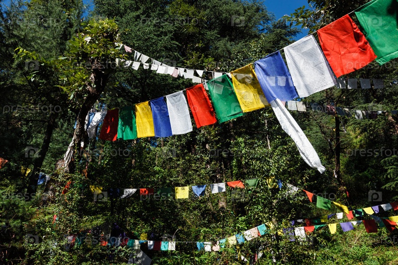 Буддистская молитва Флаги лента с Om Mani Padme Hum буддийская мантра молитвы, что означает Слава драгоценности в лотосе на Коре вокруг комплекса Цуглаганг