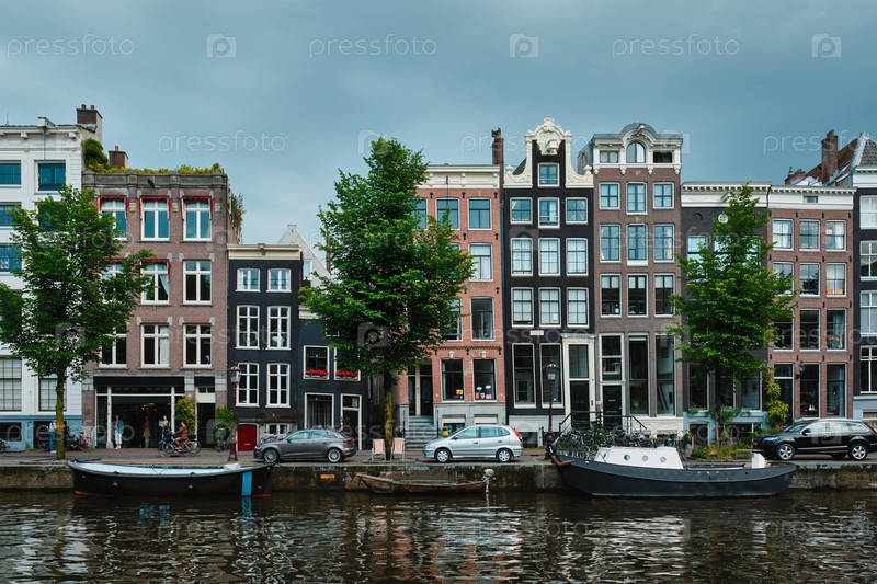Сингельский канал в Амстердаме со своими старыми домами.Амстердам, Нидерланды