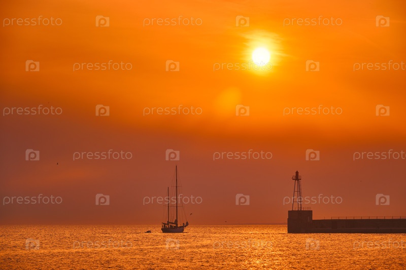 Судоход в порту Марселя при закате солнца.Марсель, Франция