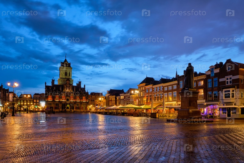 Рынок Делфтской рыночной площади (Delft Market Square Market) вечером