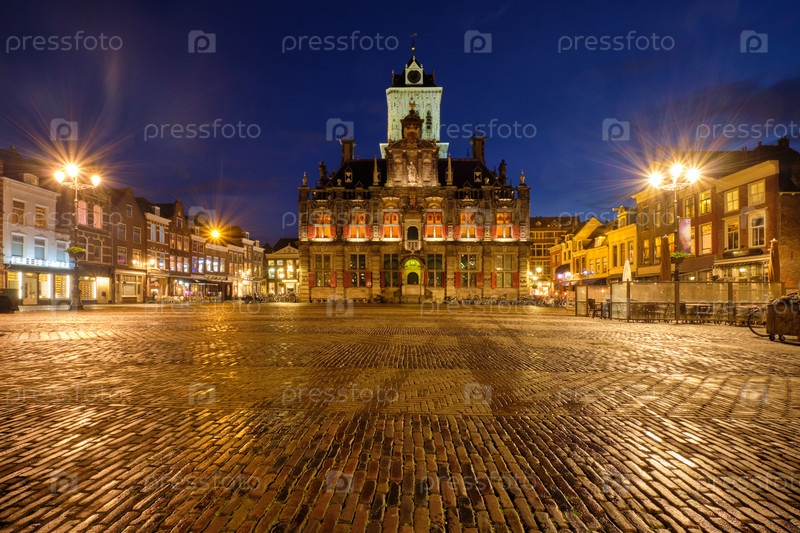 Рынок Делфтской рыночной площади (Delft Market Square Market) вечером