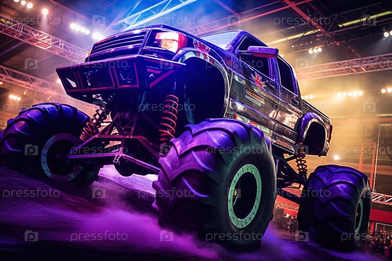 Неоновый грузовик-монстр на выставке