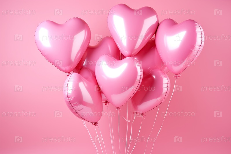 Розовые шарики сердца на мягком розовом фоне