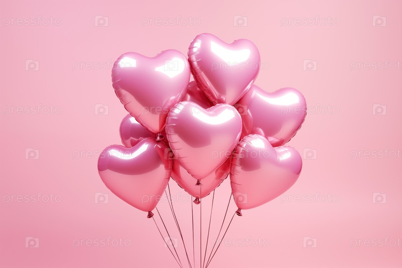 Розовые шарики сердца на мягком розовом фоне