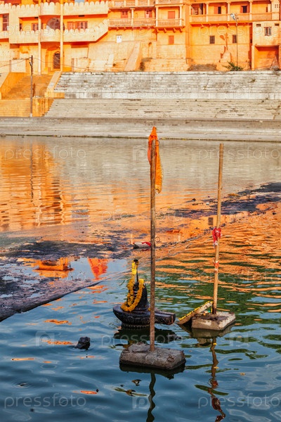 Лингам представляет собой индуистское божество Шиву, используемое для поклонения в реке Кшипра, Уджайн, штат Мадхья-Прадеш, Индия