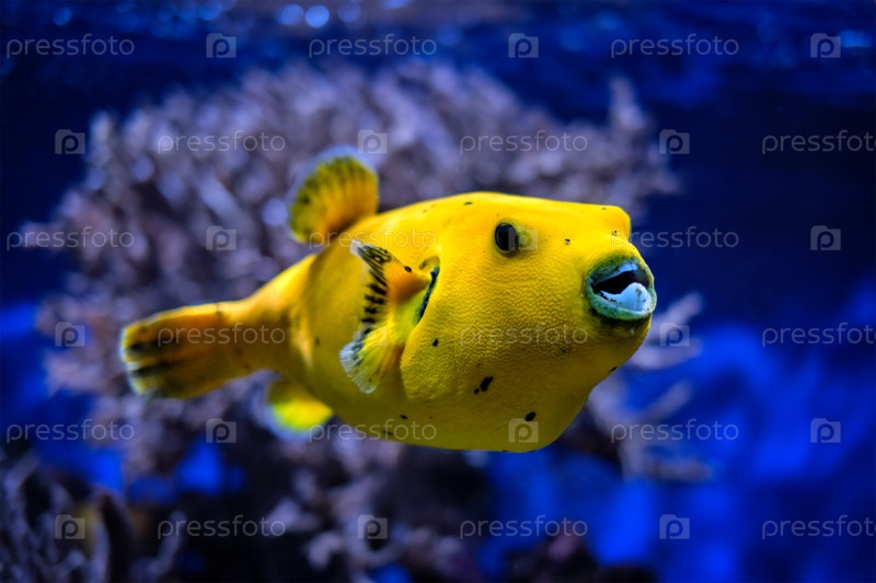 Yellow Arothron meleagris, golden puffer gyneafowl paffer fish под водой в Индо-Тихоокеанском регионе