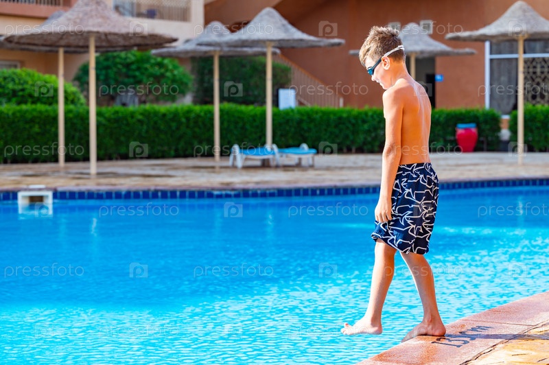Мальчик возле бассейна отеля в Египте