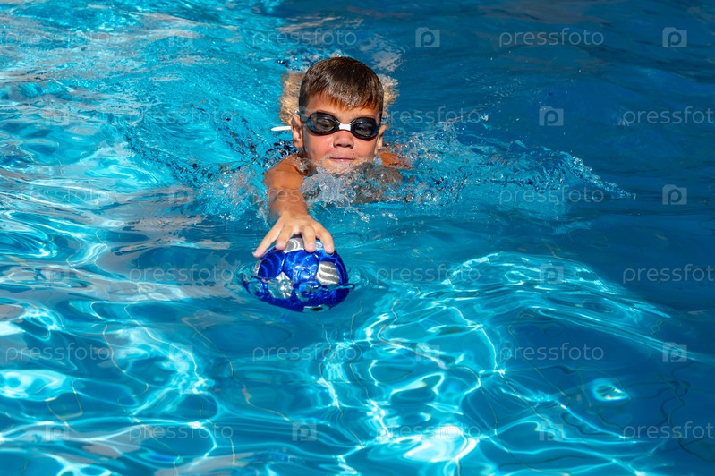 Маленький спортивный мальчик играет в бассейн