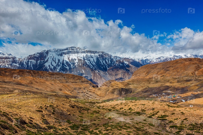 Комк - деревня на большой высоте в Гималаях. долина Спити, Химачал-Прадеш, Индия