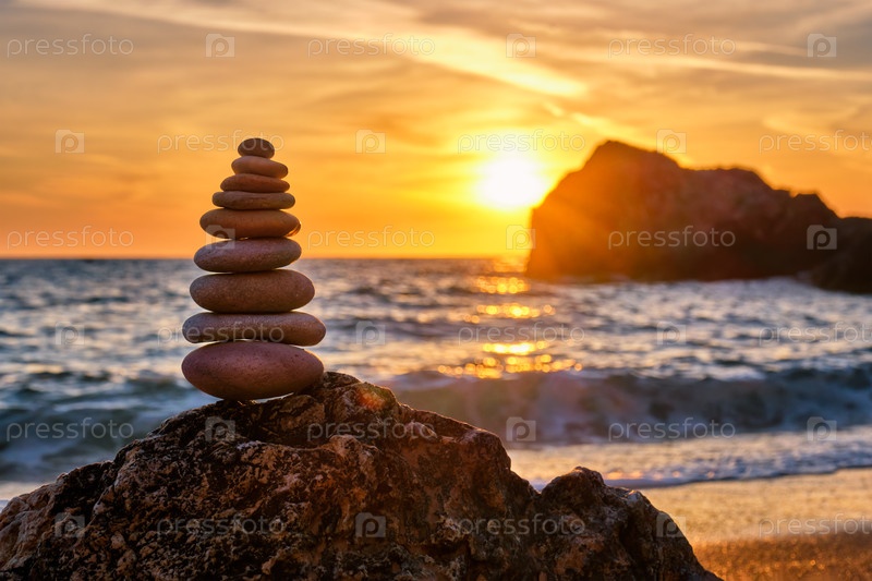 Концепция баланса и гармонии - каменная куча на пляже
