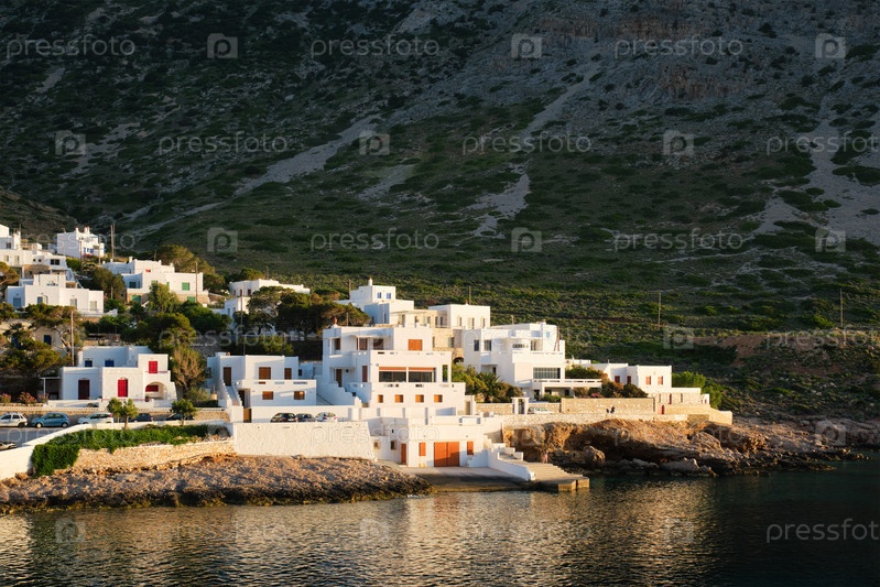 Камары с традиционными белыми домами на острове Сифнос при закате солнца