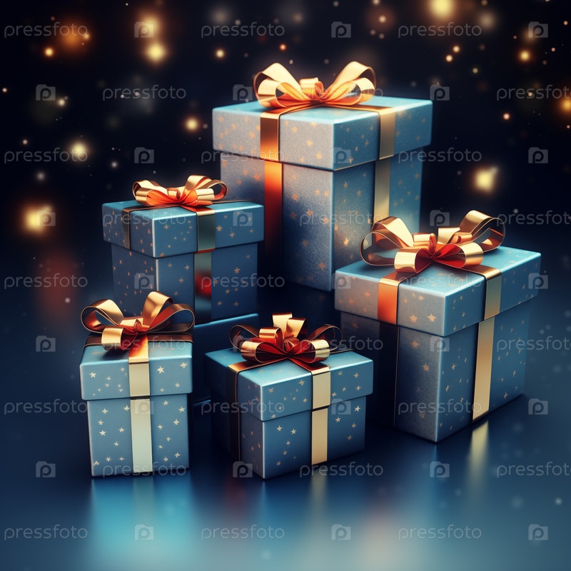 Куча голубых рождественских подарков на синем фоне.Изображение отражает праздничный веселый и радостный дух новогоднего сезона
