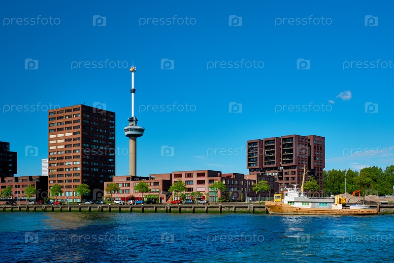 Городской пейзаж Роттердама с рекой Евромаст и Nieuwe Maas