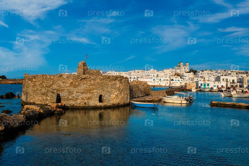 Живописный город Науза на острове Парос, Греция