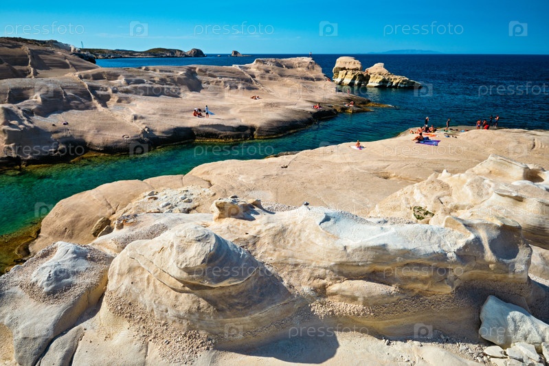 Знаменитый пляж Саранико на острове Милос в Греции