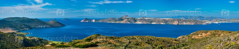 Живописная панорама греческих пейзажей - Эгейское море возле острова Милос в летний день в Греции