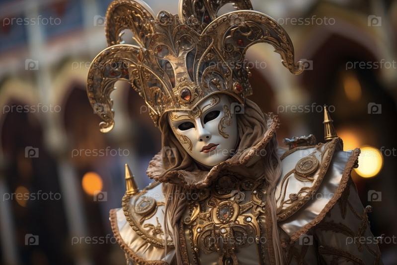 Элегантный мужчина в ярком карнавальном костюме и маске на Венецианском фестивале