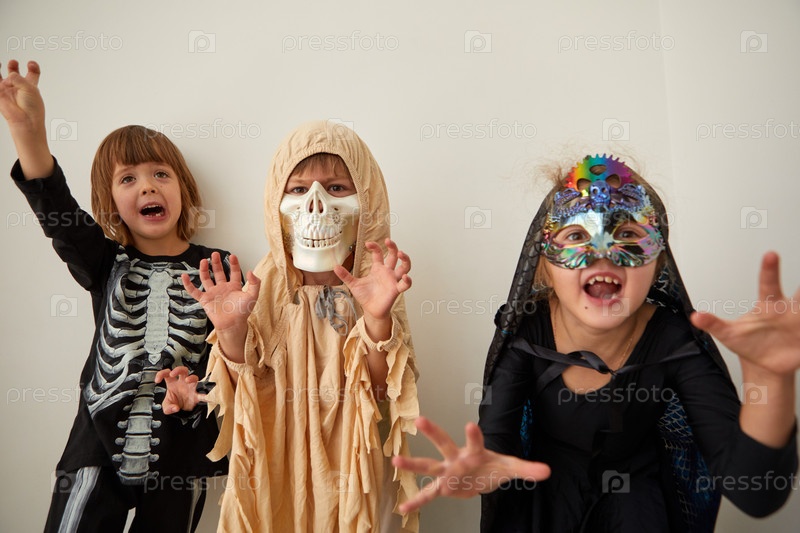 Дети проводят замечательный Хэллоуин в красочных костюмах, наслаждаясь жутким удовольствием с близкими