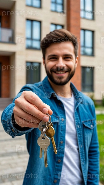Молодой человек держит ключи в руке