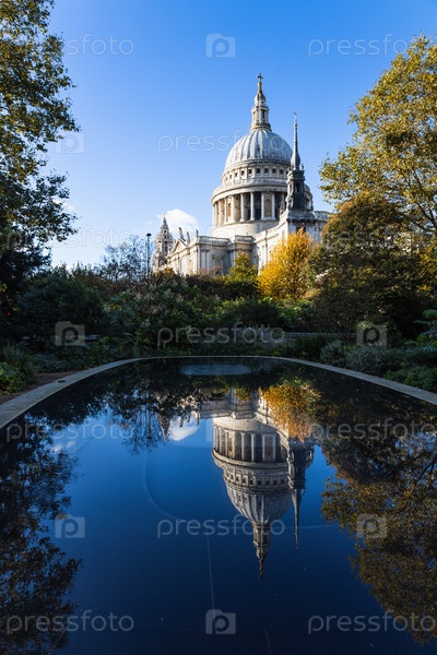 Знаменитый собор Святого Павла в Лондоне, Великобритания с его великолепным куполом идеально отражается на спокойной воде
