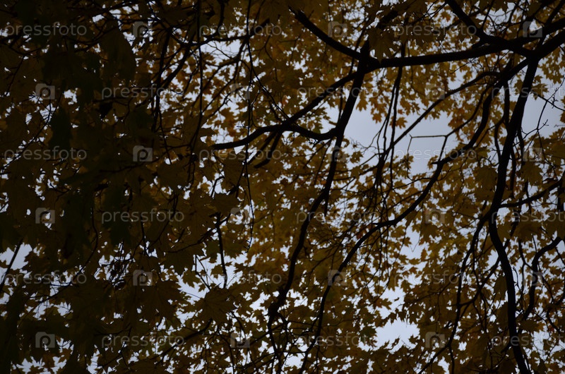 Осенние кленовые листья против облачного неба: фоновое изображение