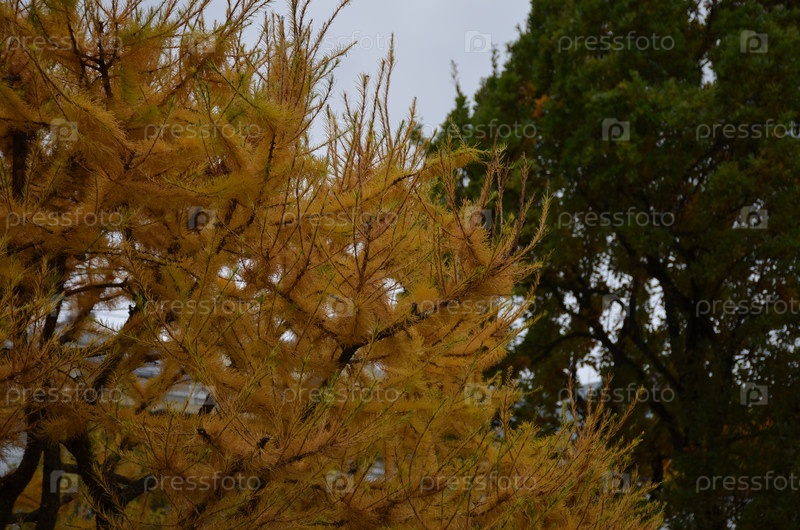 Ларча, покрытая ярко-желтыми иглами осенью