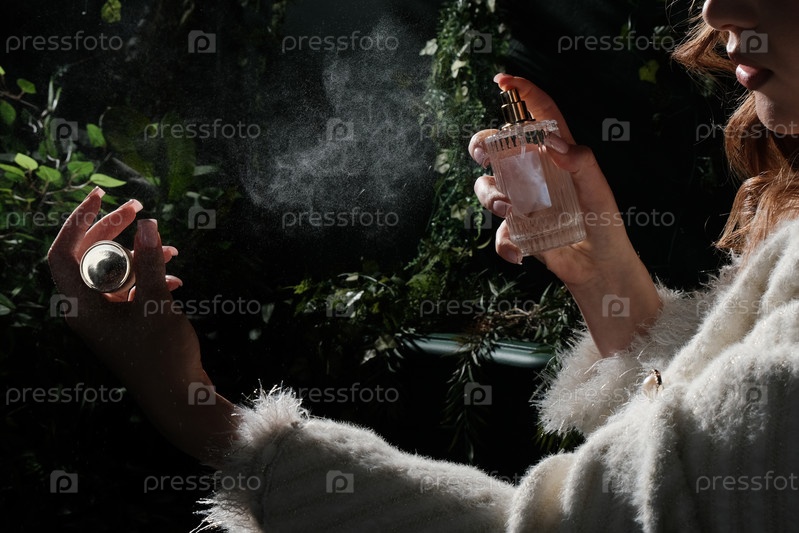 Девушка распыляет парфюм в подсвечнике