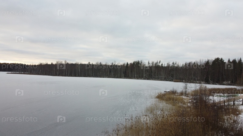 Замороженное озеро возле зимнего леса