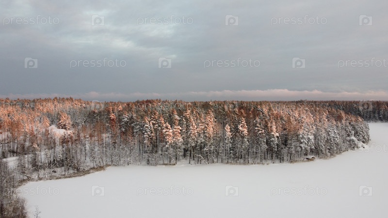 Зимний хвойный лес с высоты