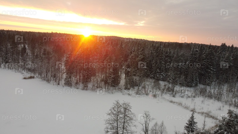 Зимний хвойный лес с высоты