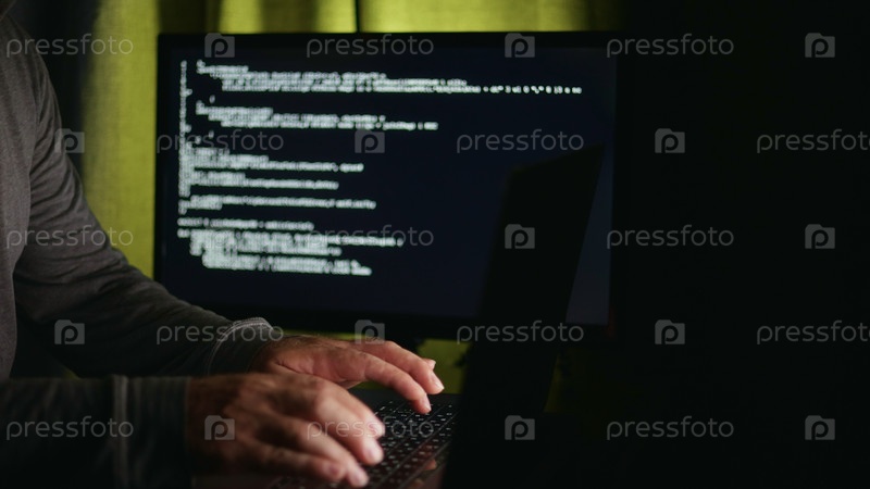 Программист, который кодирует алгоритмы ИИ в среде фиолетового света, программист, который улучшает системы машинного интеллекта, программист, который точно реализует технологические решения, отлично подходит для рекламных кампаний по разработке ИИ