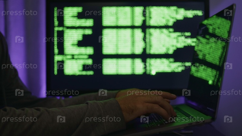 Remote worker интегрирует облачные решения на двоичном экране ноутбука, обеспечивая бесшовную функциональность, улучшая производительность ИТ-команды с оптимизированными рабочими процессами, идеально подходит для удаленных продвижений, тематических исслед