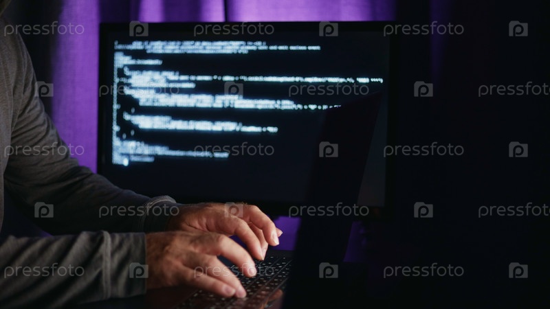 Сцена киберотладок, эксперт по кибербезопасности изучает терминальные данные и детали отслеживания, подробный обзор аналитиков ИТ-безопасности, работающих над кодом и журналами расследований с сосредоточенным вниманием