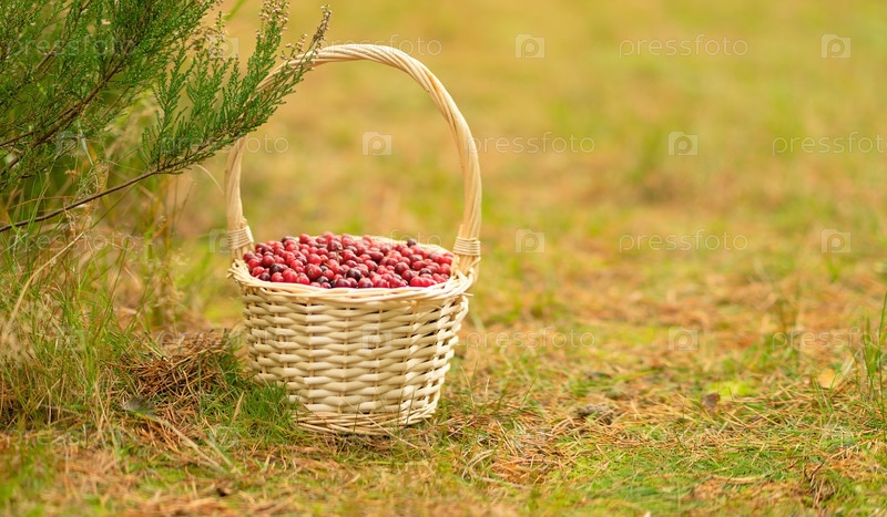 Полная корзина клюквенных в лесу горизонтальный осенний вид