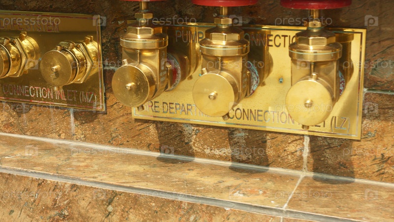Входное оборудование отеля сияет ярко, отражая металлическую арматуру в дверном проеме гостиницы блестяще светит, полированная латунная панель приема освещается солнечным светом у входа в отель, что указывает на работоспособность