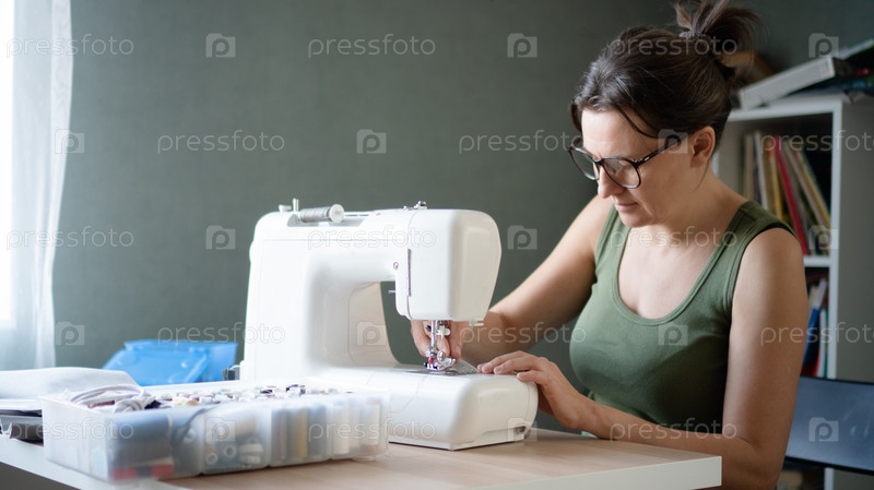 Швея создает одежду на швейной машине