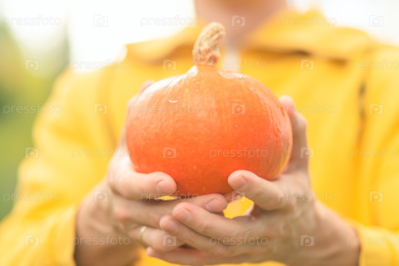 Свежая тыква в руках фермера