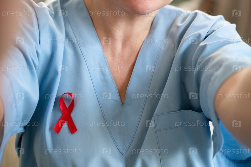 Селфи медицинского персонала с красной лентой для кампании по информированию о ВИЧ