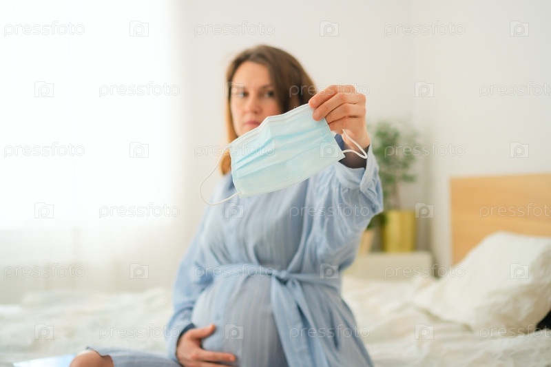 Ждать, пока мать будет сидеть на кровати в защитной маске во время болезни.Ответственная профилактика респираторных инфекций во время беременности