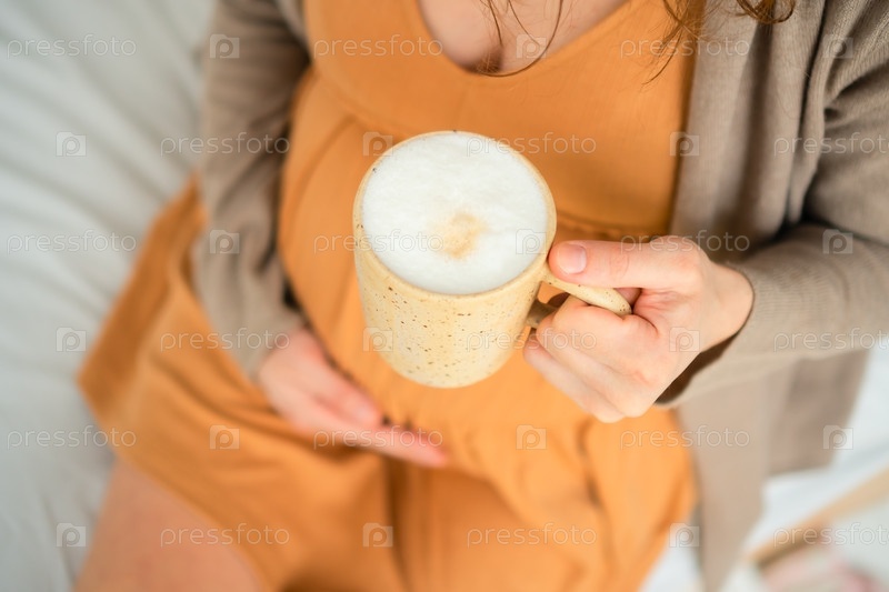 Беременная с теплым кофе