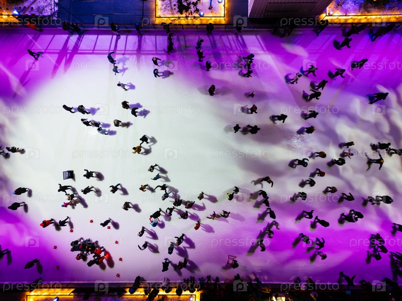Городской каток в Монреале освещается ночью на Рождество, Квебек, Канада